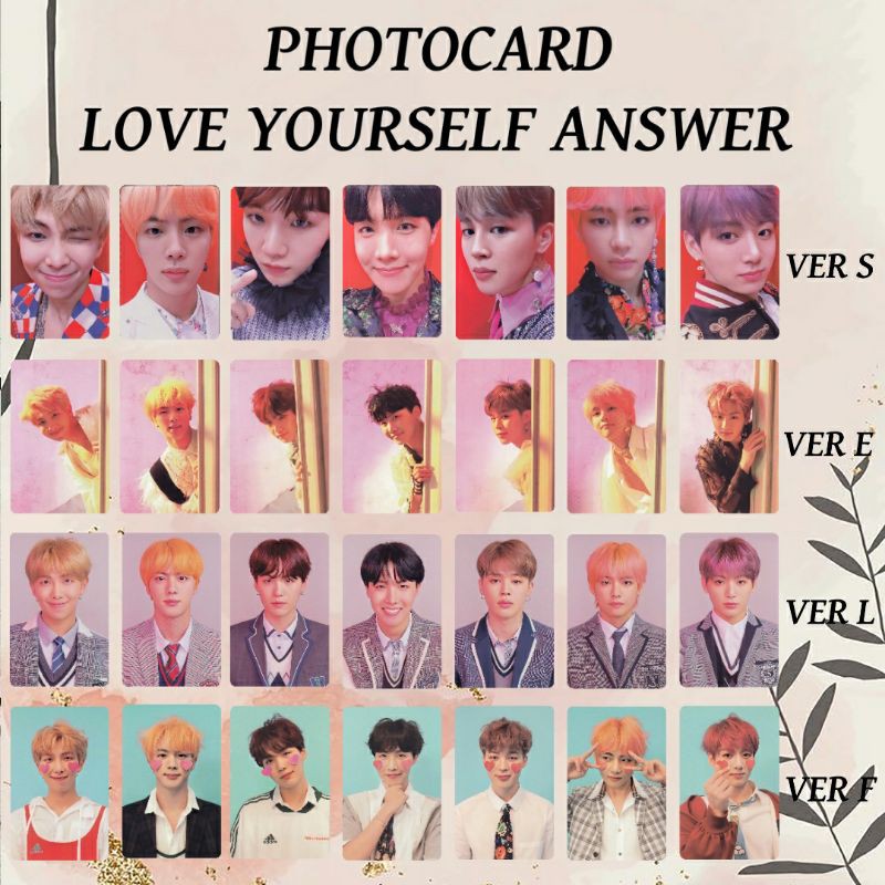 If you find this site serviceableness, please support us by sharing this posts to your preference social media accounts like Facebook, Instagram and so on or you can also Download this blog page with the title Love Yourself Answer All Versions Photocards by using Ctrl + D for devices a laptop with a Windows operating system or Command + D for laptops with an Apple operating system. If you use a smartphone, you can also use the drawer menu of the browser you are using. Whether it's a Windows, Mac, iOS or Android operating system, you will still be able to bookmark this web.